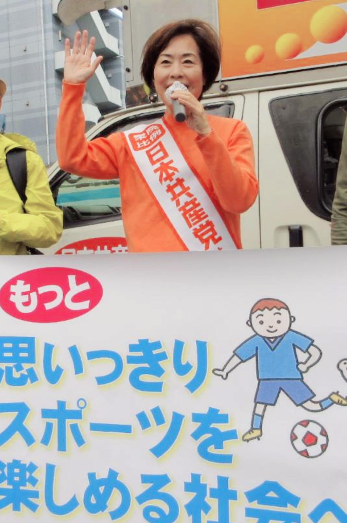 10月20日朝、JR新横浜駅そばで、新日本体育連盟が主催する月例マラソン大会に参加の皆さんに、街角から日本共産党のスポーツ政策を訴えました。