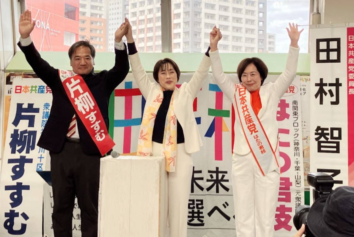 川崎駅では片柳すすむ神奈川10区(川崎区・幸区)候補、藤沢駅では加藤なを子神奈川12区(藤沢市・寒川町)候補、早川うた子神奈川13区(大和市、綾瀬市、瀬谷区)候補が訴えました。