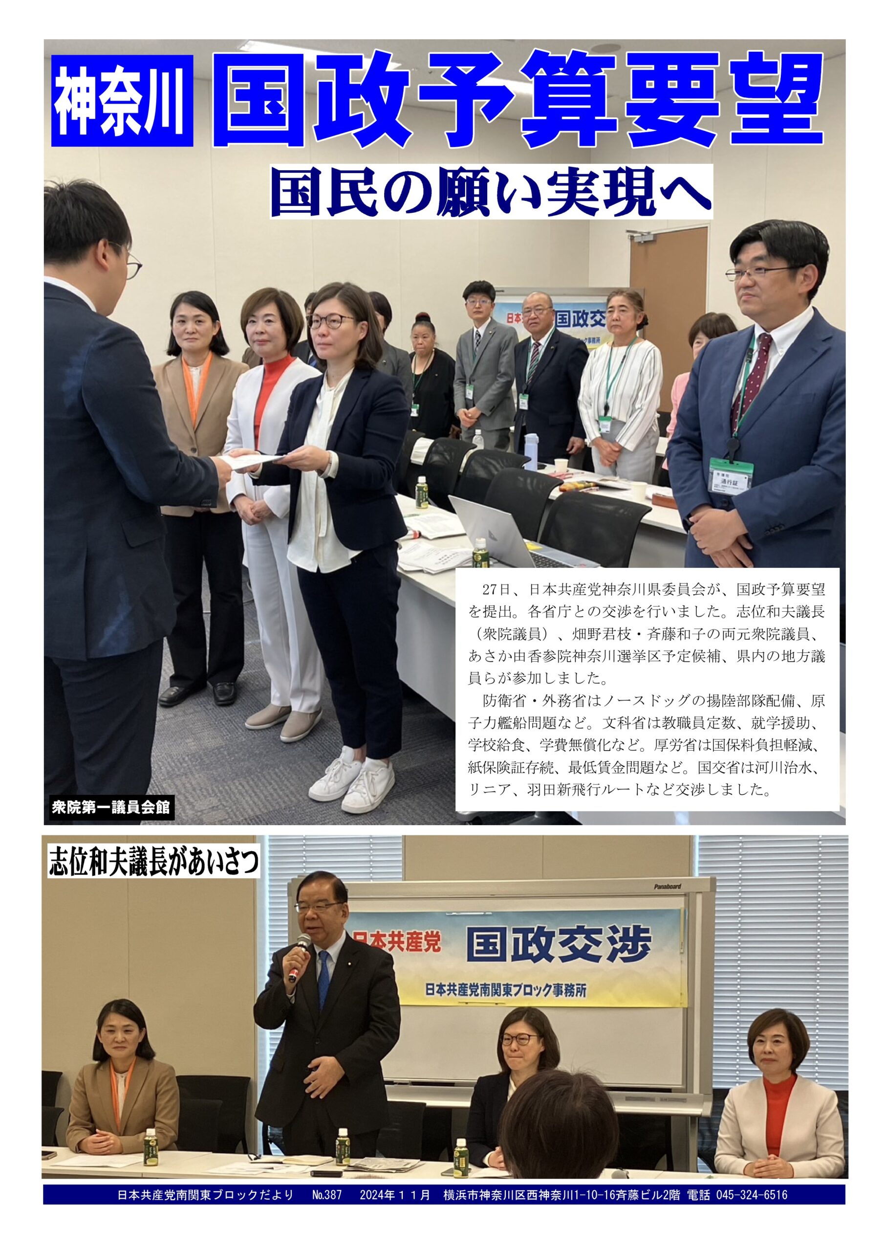 日本共産党南関東ブロックだより №387を発行。
