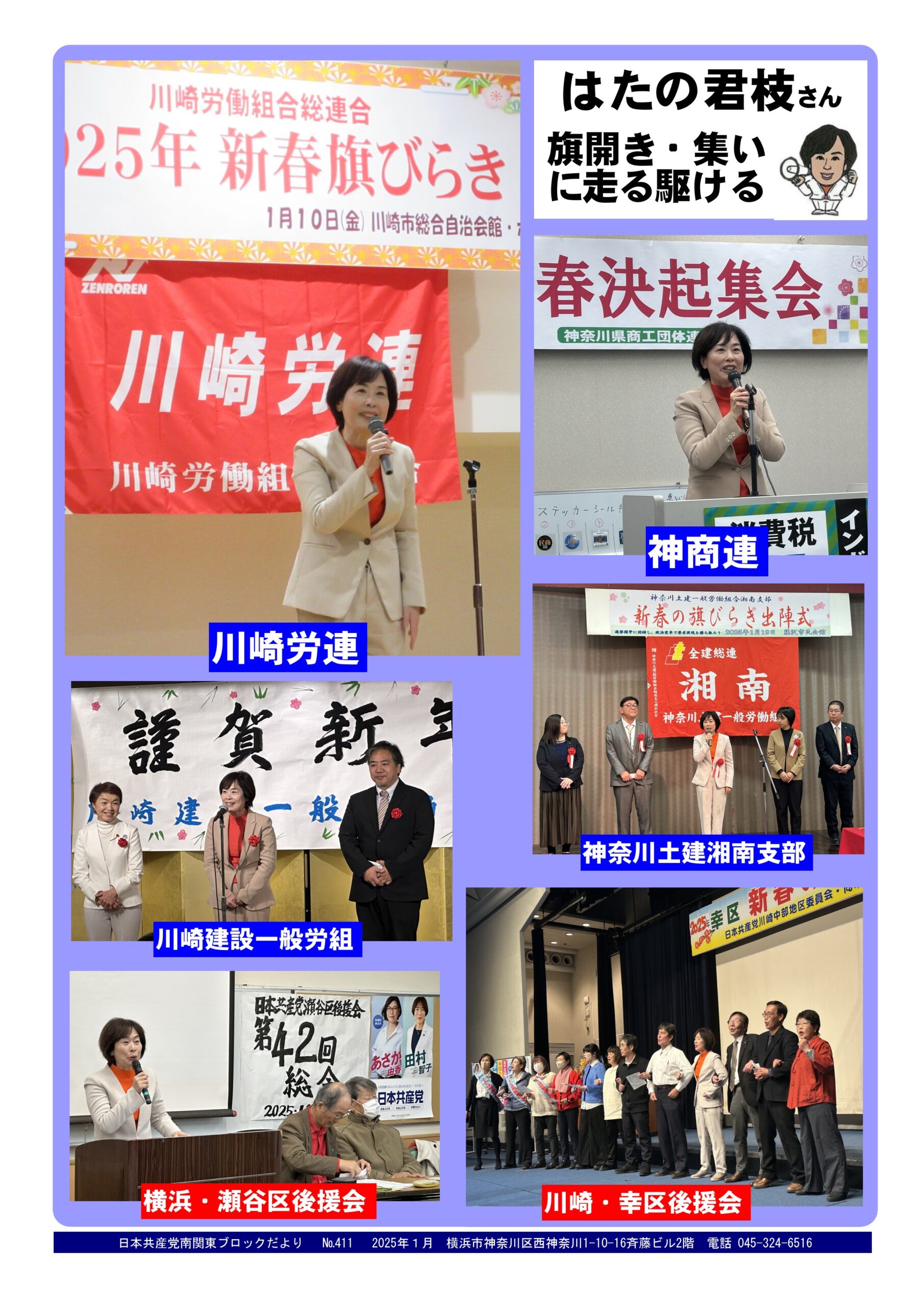 22Jan2025南関東ブロックだより 411号2025年1月22日南関東ブロック事務所だより日本共産党南関東ブロックだより №411を発行。 内容は…①はたの君枝元衆院議員が、新年から各労組「旗開き」や民主団体・党後援会の「新春の集い」へ参加、新年の挨拶をしています。 添付ファイル